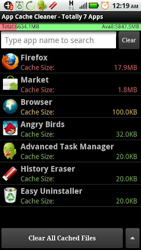 Lista de aplicaciones de cualquier tamaño de caché o nombre de la aplicación